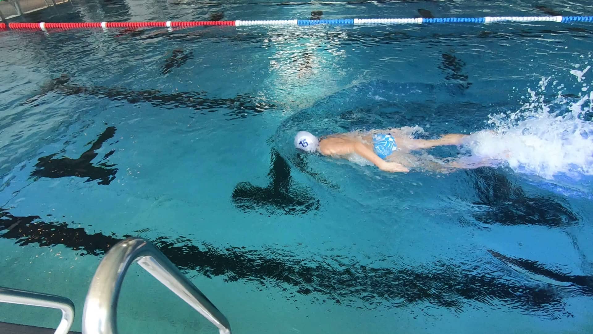 Provedba: Plivanje sporijim ritmom, fokus na visokom laktu i okretu ramena. Trener pokazuje pokret.