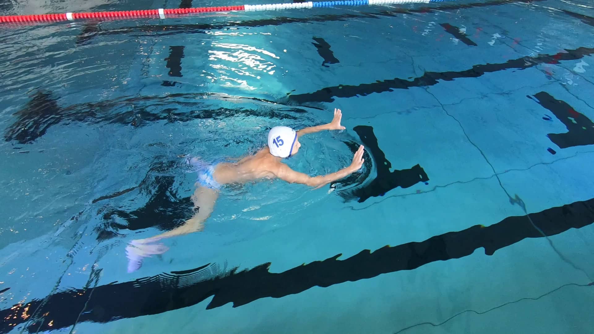 Provedba: Noge rade brzo i stalno, ruke mirne iznad vode. Mogu se koristiti rekviziti za otpor.